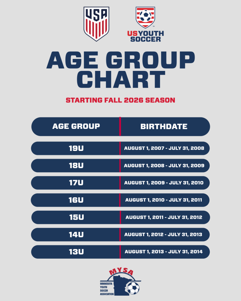 Following extensive review and discussion, US Youth Soccer, AYSO, and US Club Soccer have collectively decided to move to an age group player formation cycle that runs from August 1 to July 31, starting with the 2026-2027 season/registration year. This change was made based on additional critical feedback, data, and expert input to better align players with their school-grade peers. Our associations feel that this age group player formation will be the most inclusive and help increase participation. Learn more here.