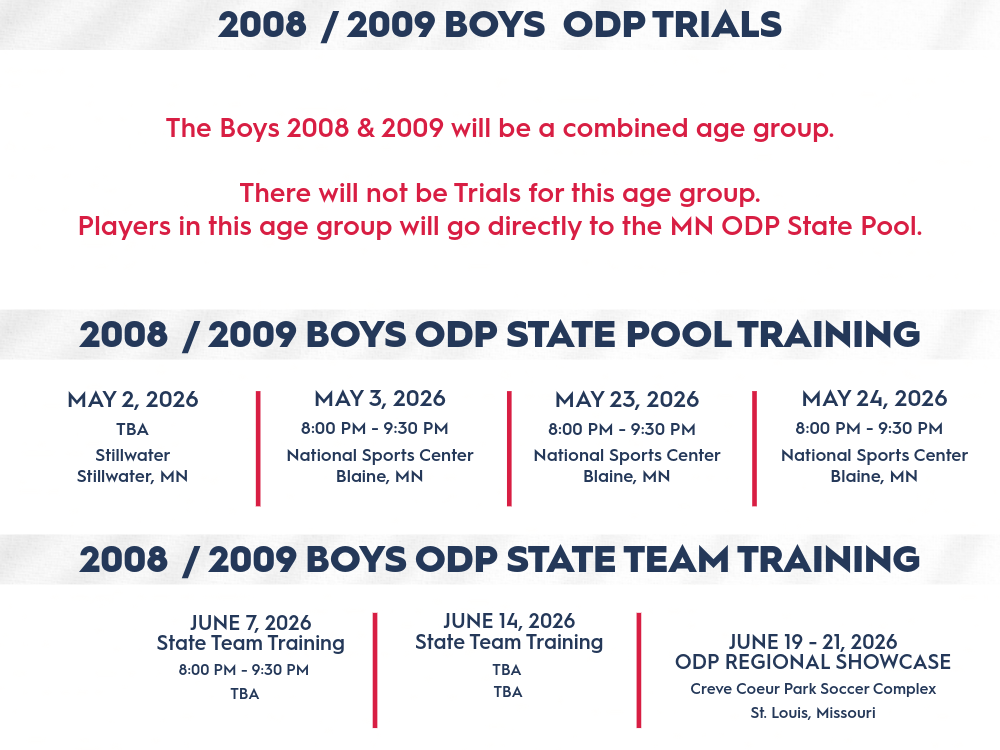 ODP continues to be part of a multi-channeled U.S. player pathway that provides young, aspiring players the opportunity to reach higher levels in the game. Players in Minnesota aged ten and older are offered multiple opportunities within ODP to develop in a competitive learning environment, guided by coaches who are focused and committed to aiding the player development process.